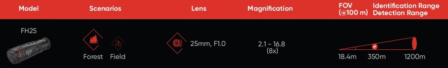 La lente focal de 25mm con aumento de 2x, hace del FALKON FH25 un compañero ideal en el bosque.